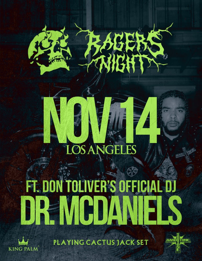 Rager’s Night is an event made by ragers for ragers. Prepare for all the moshpits, stage dives, backflips, and shit like that. We play music from Travis Scott, Playboi Carti, Ken Carson, and underground artists like Che and Hardrock.